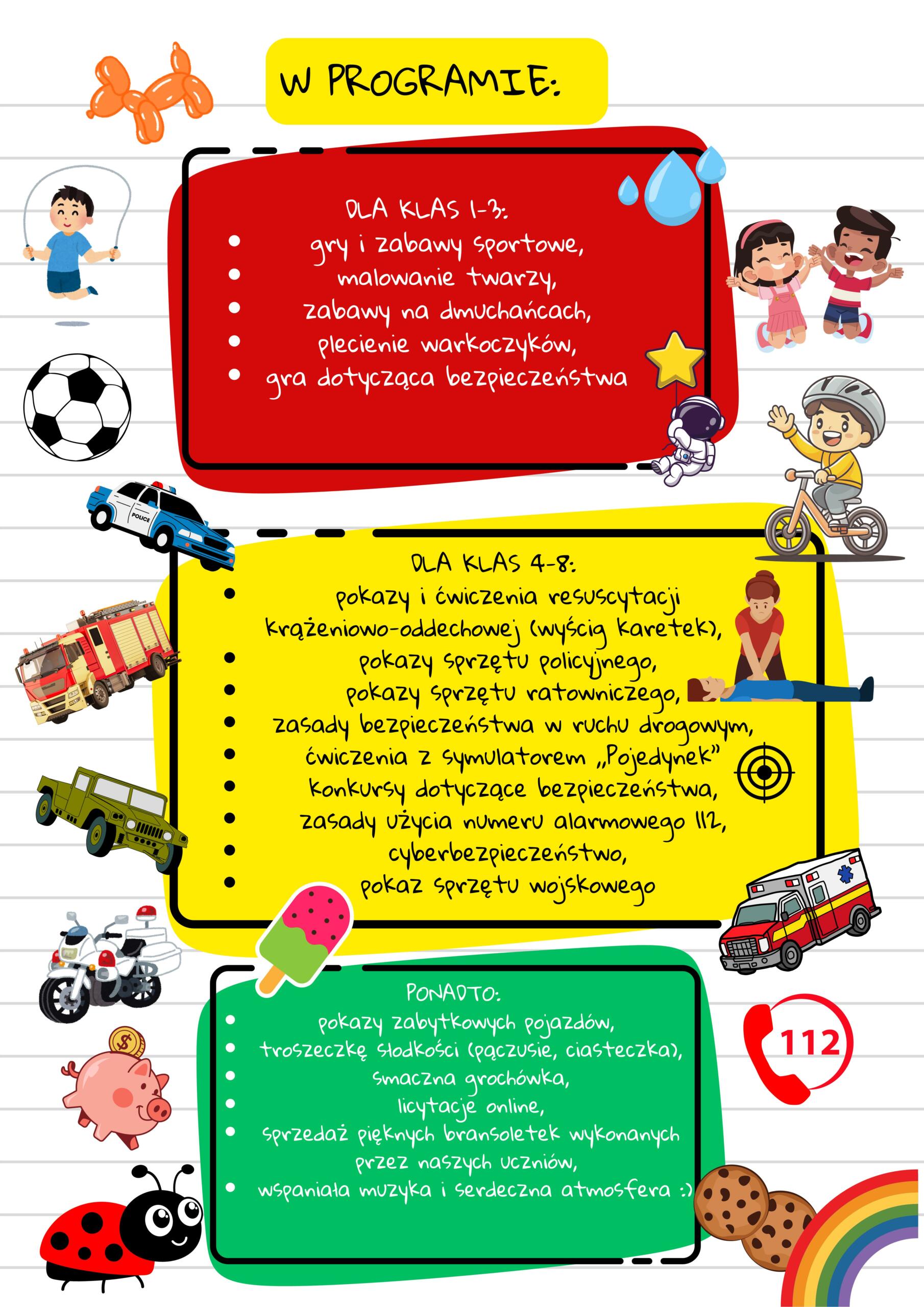 Atrakcje będą dostosowane do wieku uczestników. Oprócz zabawy wszyscy zyskają też konkretną wiedzę m.in. na temat cyberbezpieczeństwa i zasad udzielania pierwszej pomocy.
