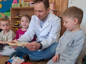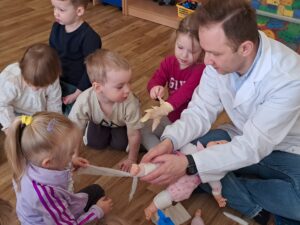 Co tata Jasia i Oliwki robił w naszym przedszkolu? Zobaczcie sami! Po tych zajęciach pół przedszkola wybiera się na medycynę…:) Panu Mateuszowi bardzo dziękujemy.