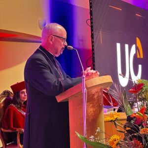 Biskup Andrzej Czaja gratulował uczelni zdobyczy naukowych i badawczych. Podziękował za życzliwość dla Wydziału Teologicznego, który jest częścią UO. I za współpracę przy renowacji katedry. A także za wkład w rozwój młodego pokolenia na naszej ziemi. Zwrócił też uwagę na potrzebę spojrzenia na wiarę w Boga nie jako na coś, co zagraża wolności człowieka i jego rozwojowi.